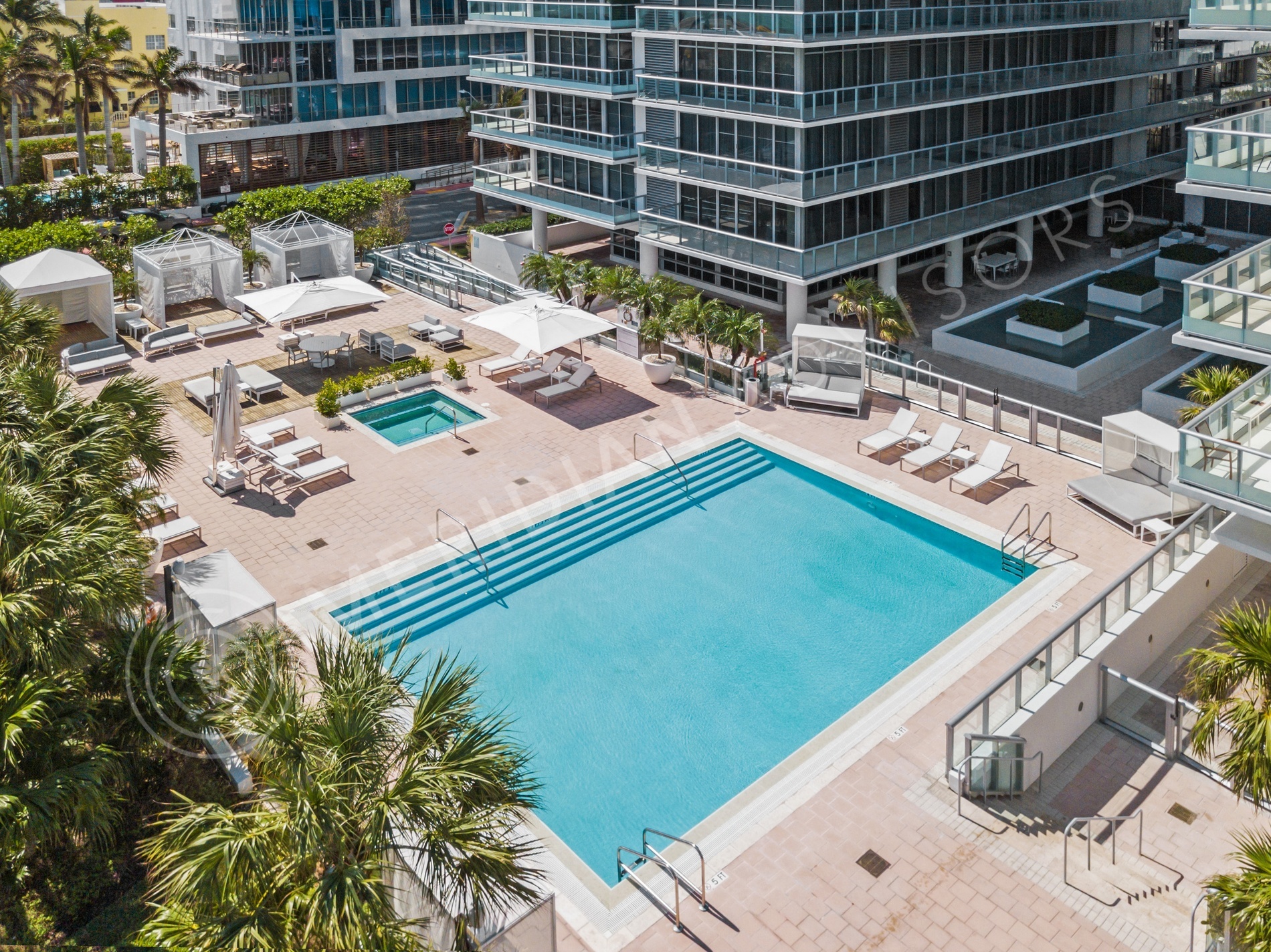 With 104 units total, the project’s interiors were created by famous interior designer Christopher Ciccone, who also happens to be Madonna’s brother. One of the property’s highlights is its oceanfront location and its impressive outdoor spaces, which include a sumptuous, multilevel oceanfront pool deck with lush tropical landscaping, a heated pool and oversized spa, direct beach access, and sun decks. The building provides chaise lounges, daybeds, and private cabanas, from which to enjoy the infinity-edge pool and water lounge.