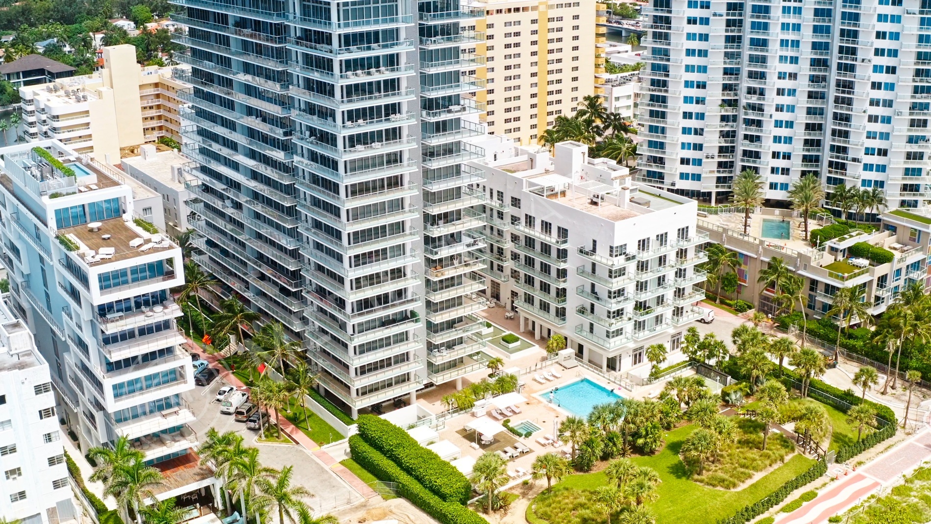The Caribbean Condo is a landmark 7-story art deco structure preserved and restored, accompanied by a newer, 18-story contemporary glass tower, built in 2008 and connected to the historic building when the property was converted to condo use by the architect Kobi Karp.