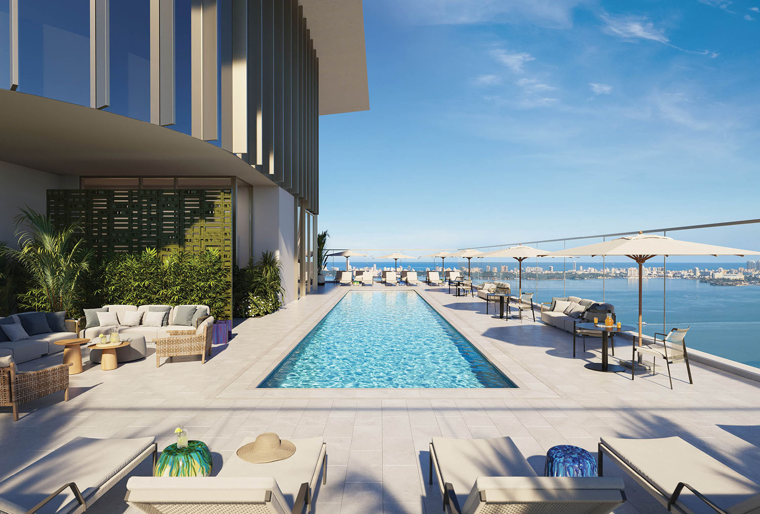 - 49-story tower with 329 luxury residences in walkable reach of the Miami Design District, Wynwood, and Midtown.