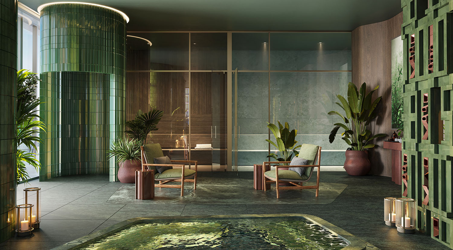 - Dedicated spa zone featuring infrared sauna, steam room, hot and cold plunge pools, healing garden, and tranquil treatment rooms.