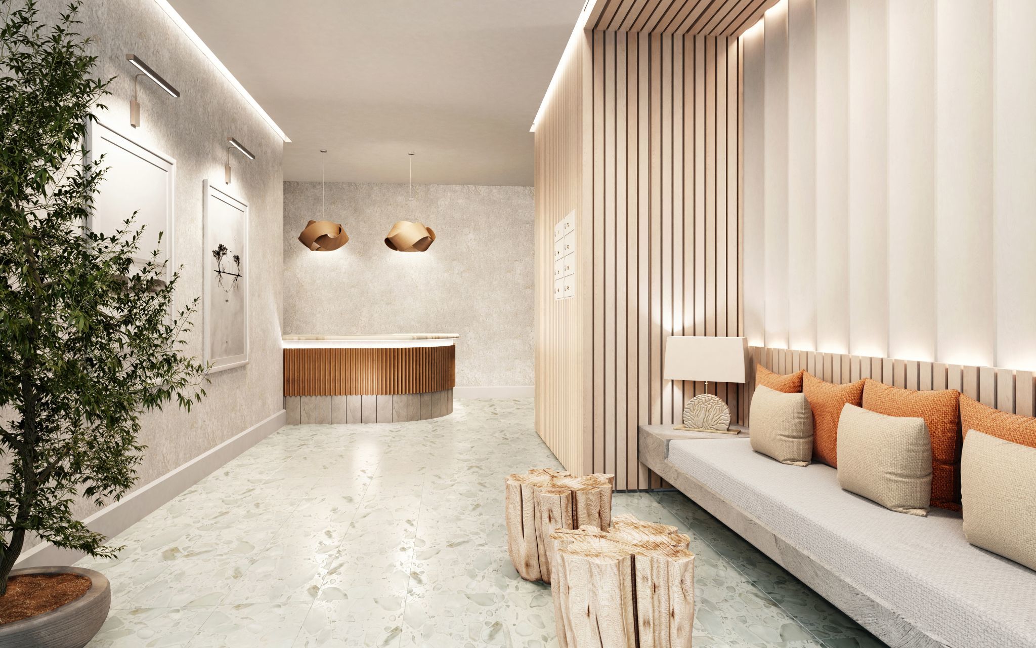 The building's thoughtfully planned floorplans designed by renowned architect Revuelta, cater to modern living, boasting open layouts with approximately 10' ceilings and floor-to-ceiling windows that flood the interiors with natural light. Private and semi-private elevators open directly to residence foyers, ensuring privacy and convenience for residents.